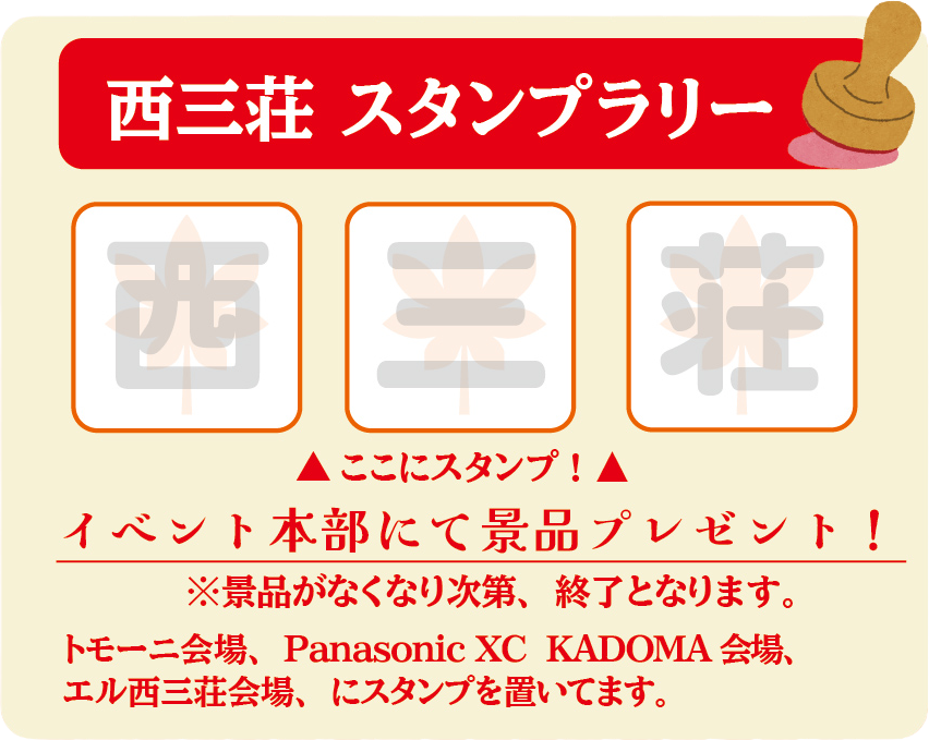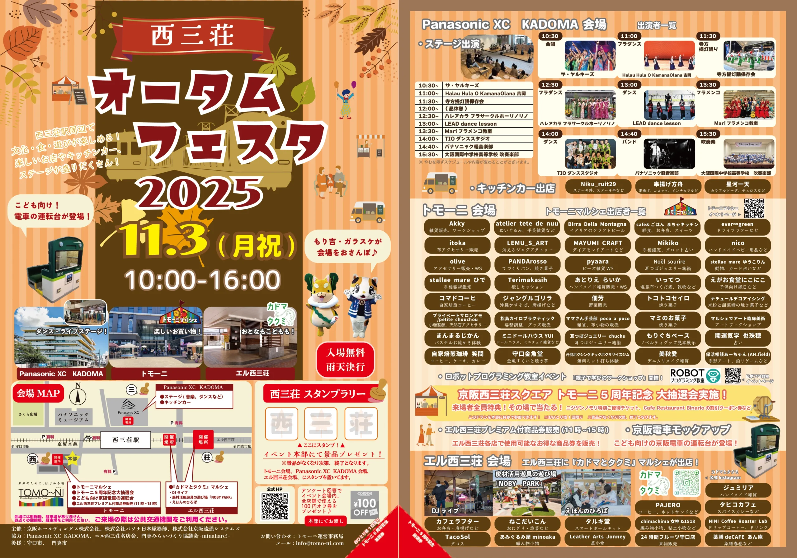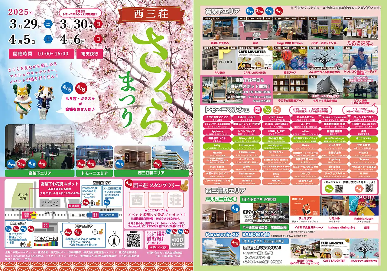 | 開催場所 | 京阪本線高架下【最寄駅】西三荘駅 1Panasonic XC KADOMA 2トモーニエリア(京阪西三荘スクエア) 3エル西三荘エリア-「ちびっこ広場」·駐輪場跡地 |